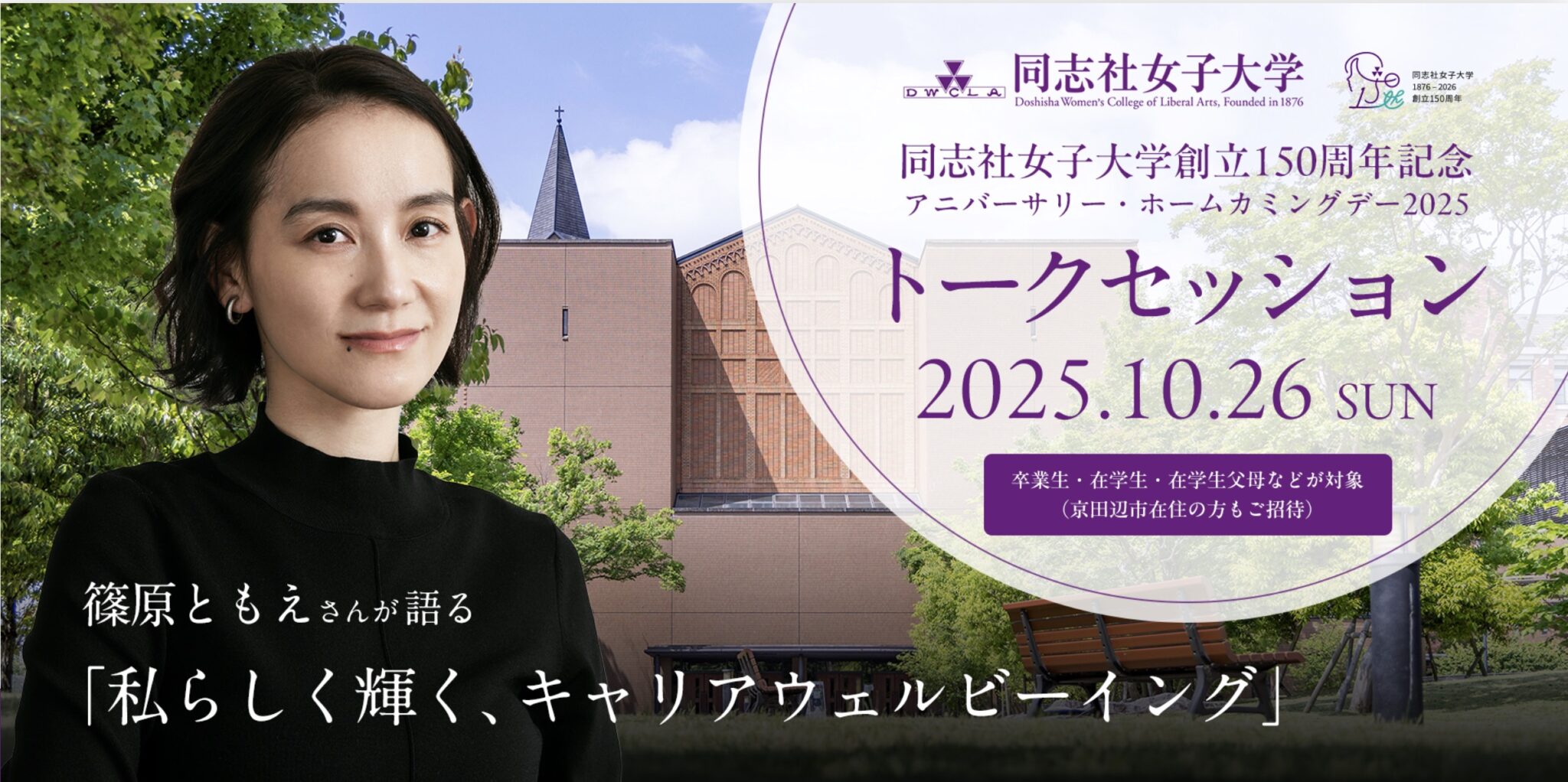 同志社女子大学が2026年に創立150周年を迎えることを記念し、アニバーサリー・ホームカミングデーのトークセッションに出演します。